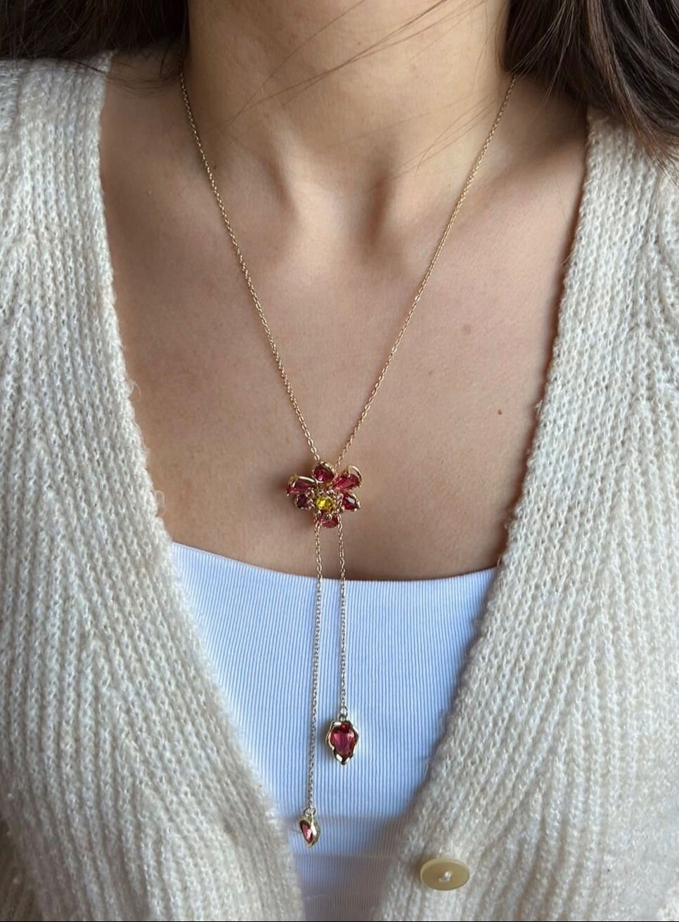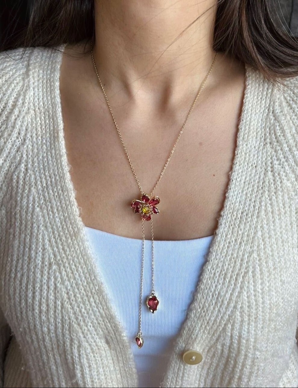 Çiçekli Ayarlanabilir Kolye Kırmızı