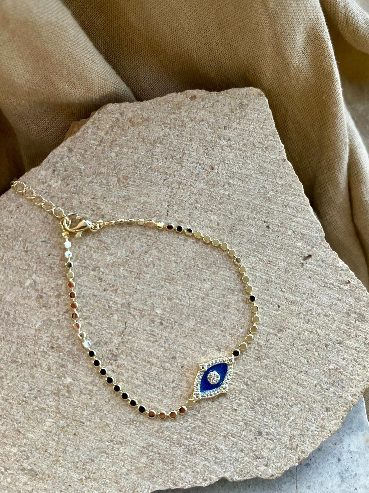 14K Göz Detaylı İnci Dizilim Bileklik