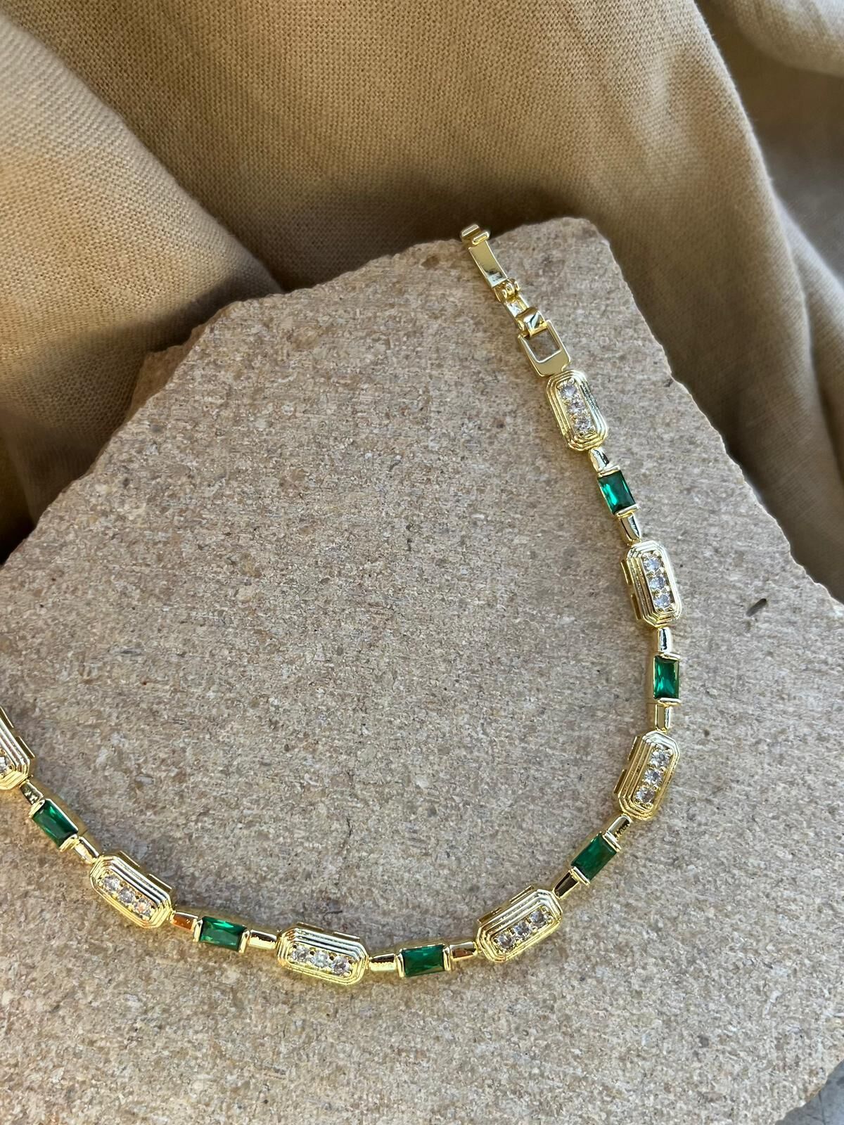14K Yeşil ve Parıltı Taşlı Bileklik