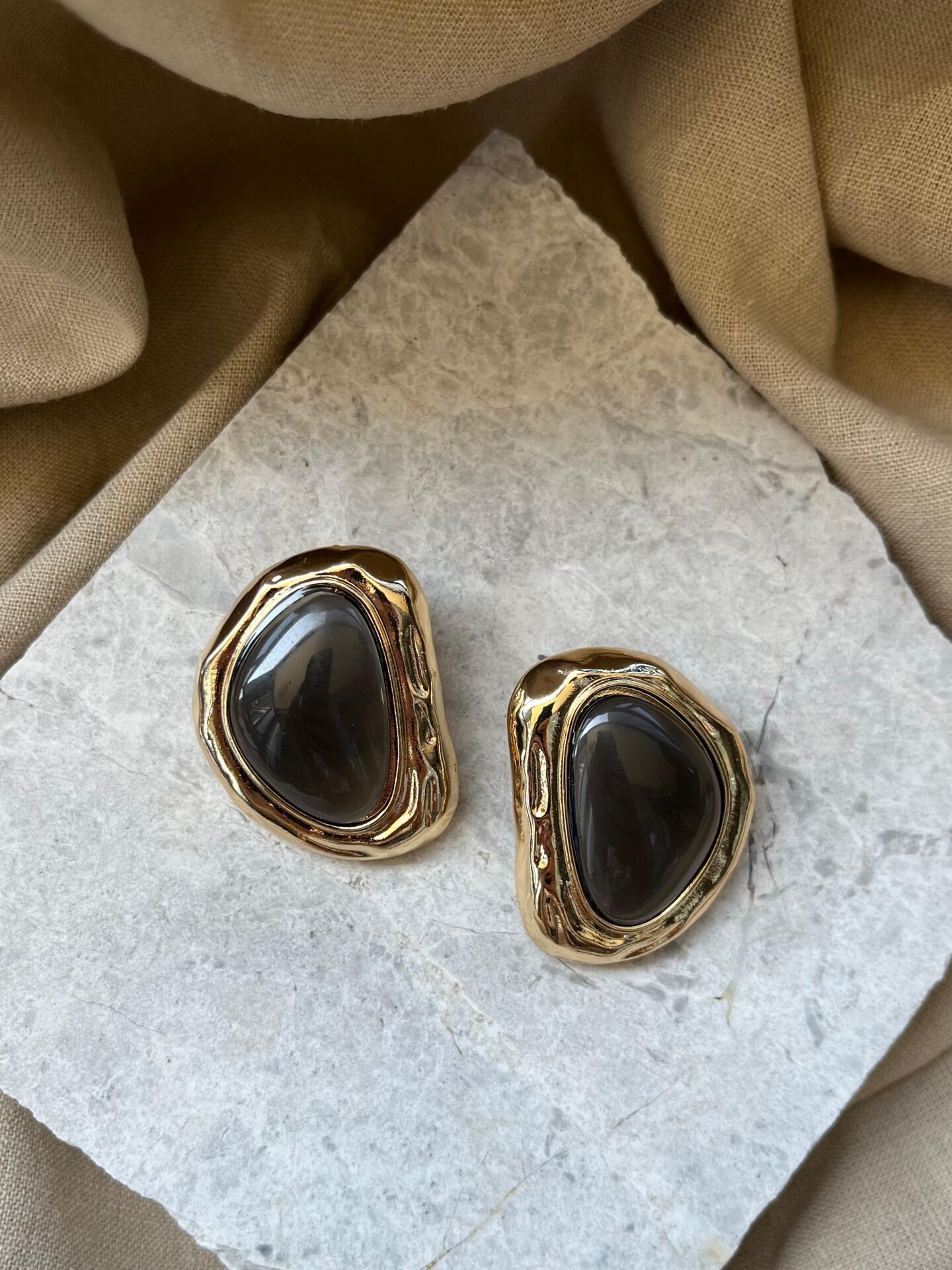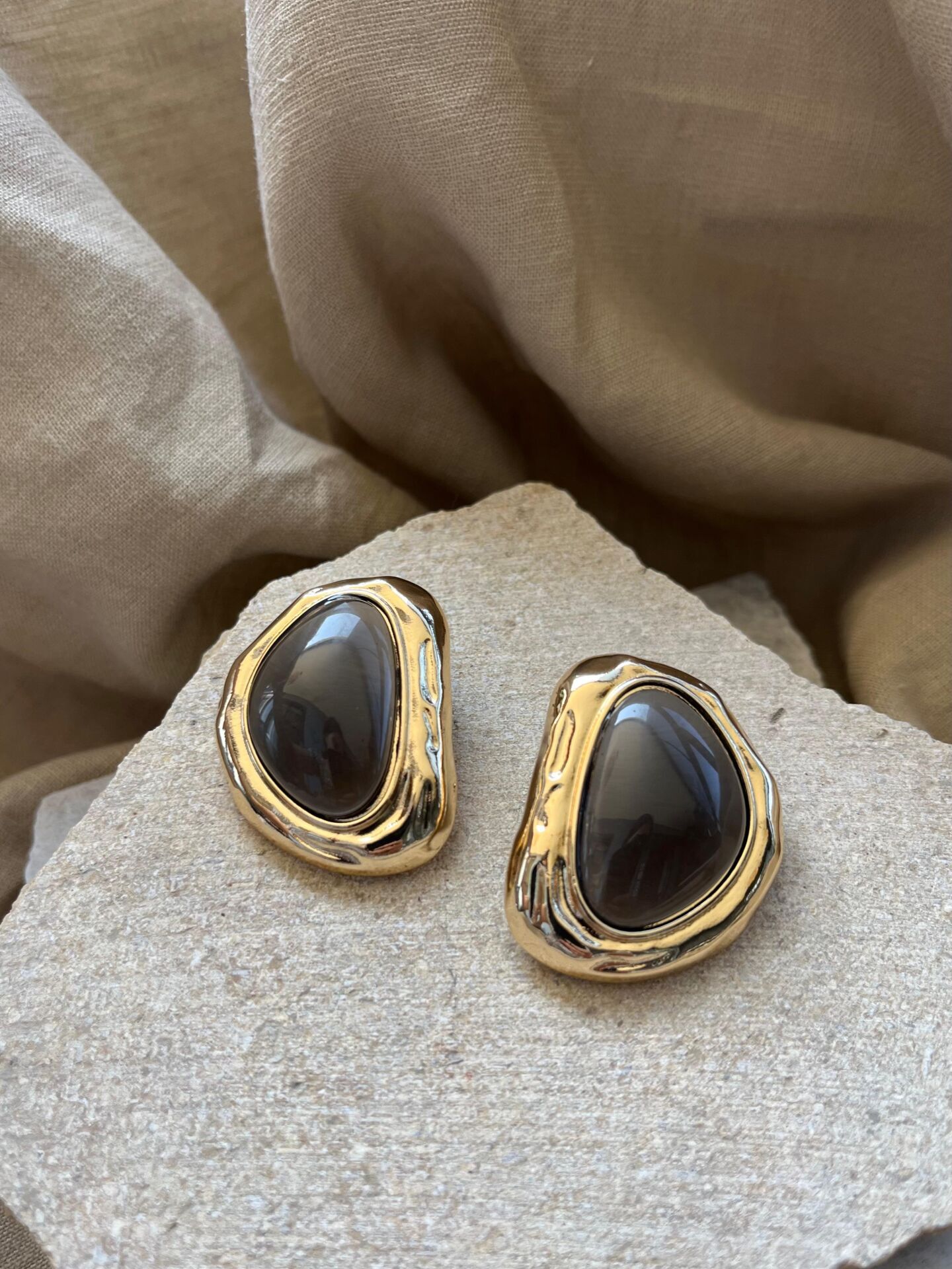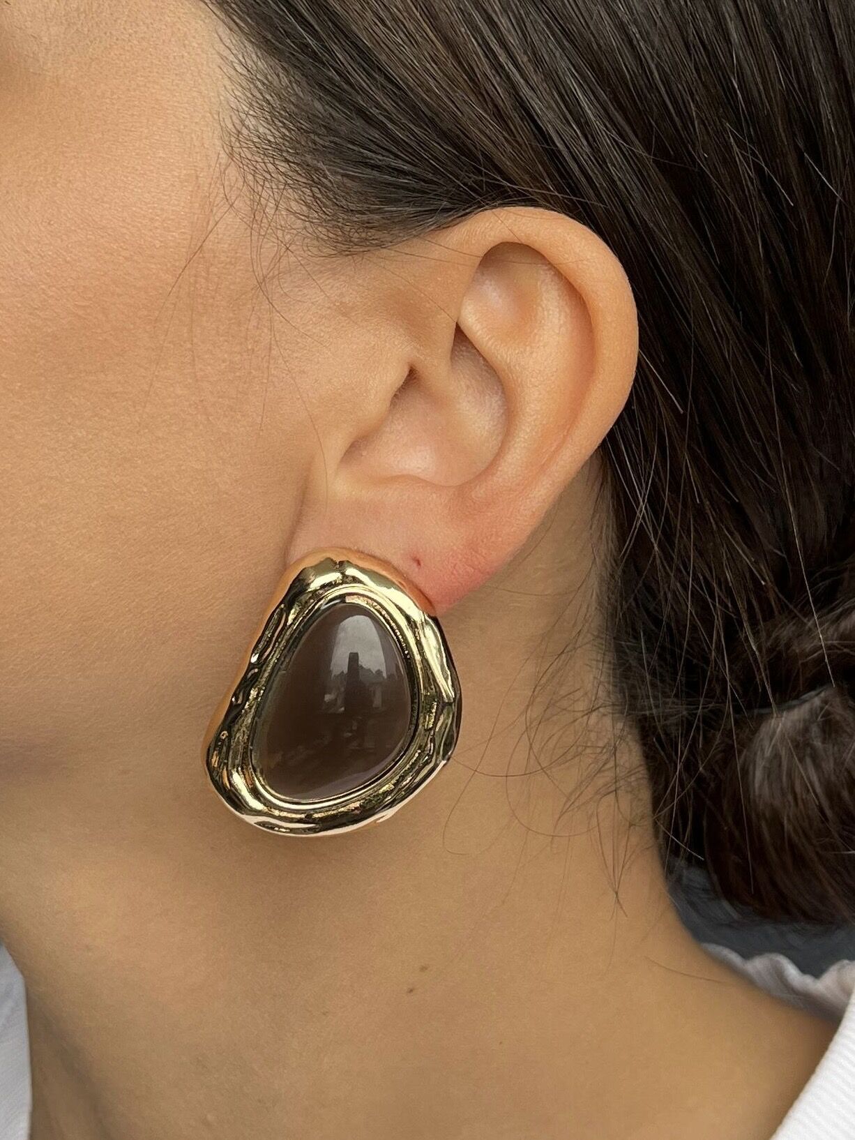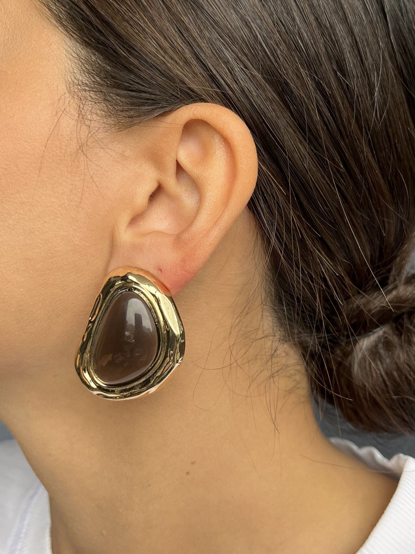 Altın Renk Çerçeveli Kahve Taşlı Küpe