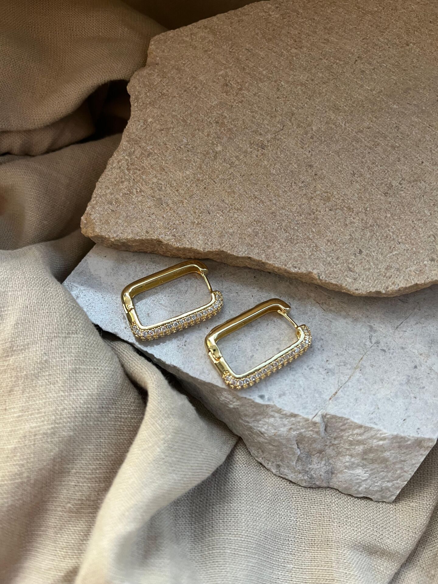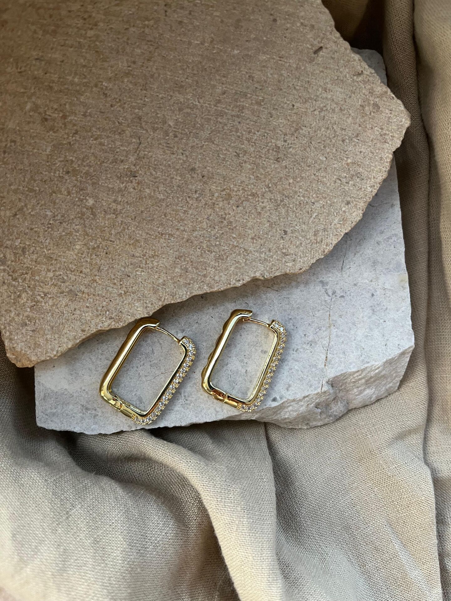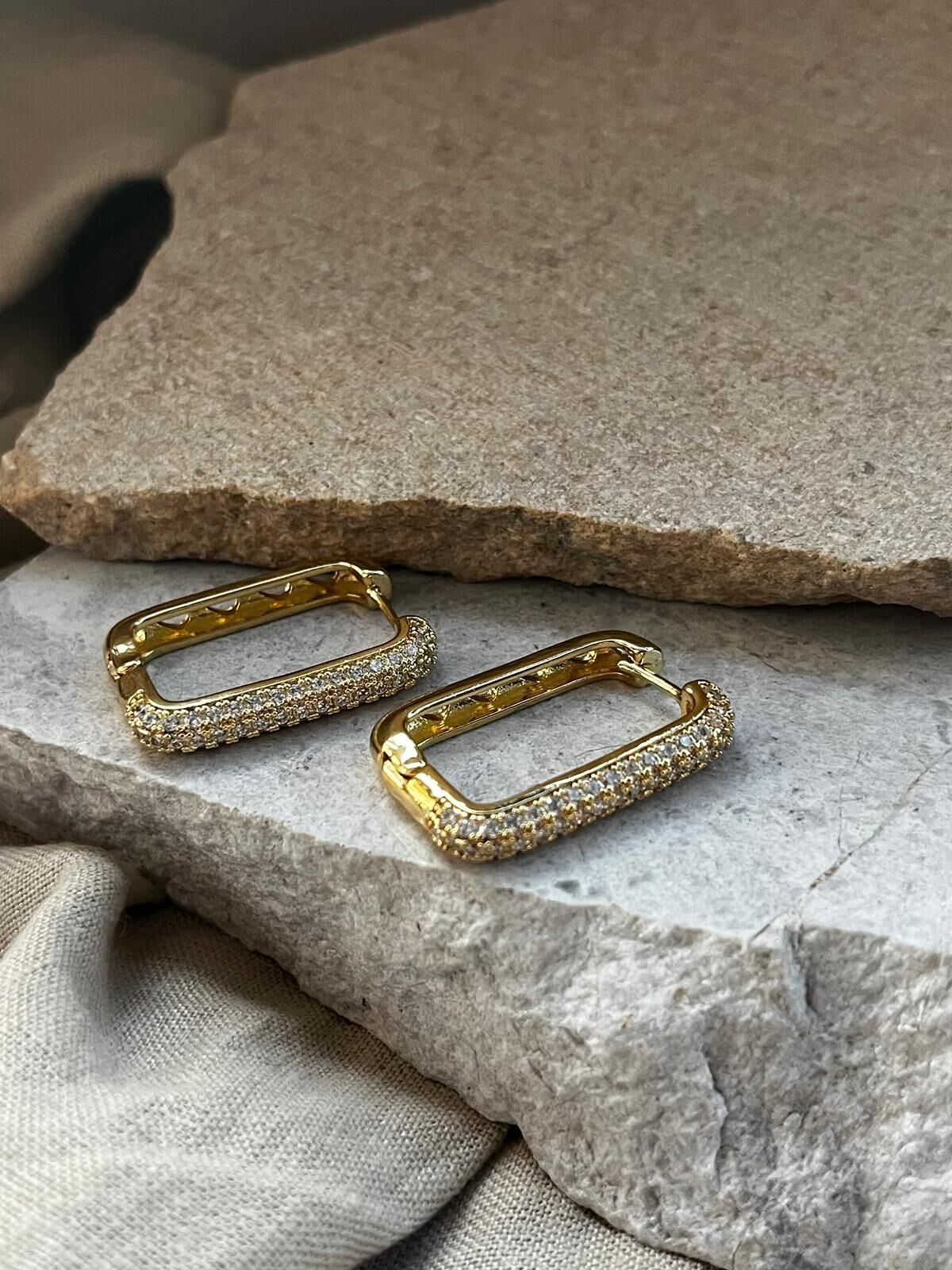 Altın Renkli Taşlı Dikdörtgen Küpe