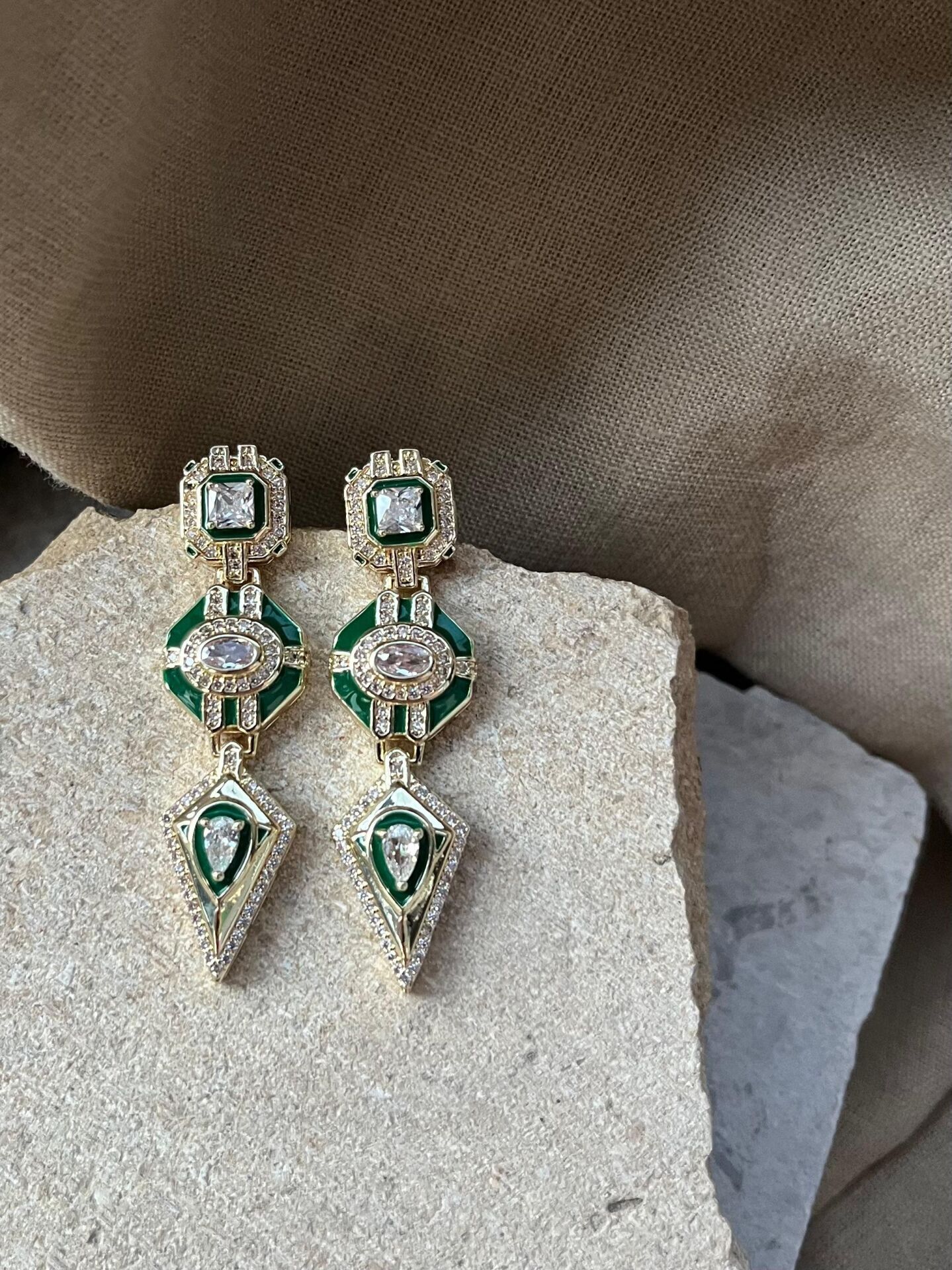Antik Yeşil Sarkıt Küpe