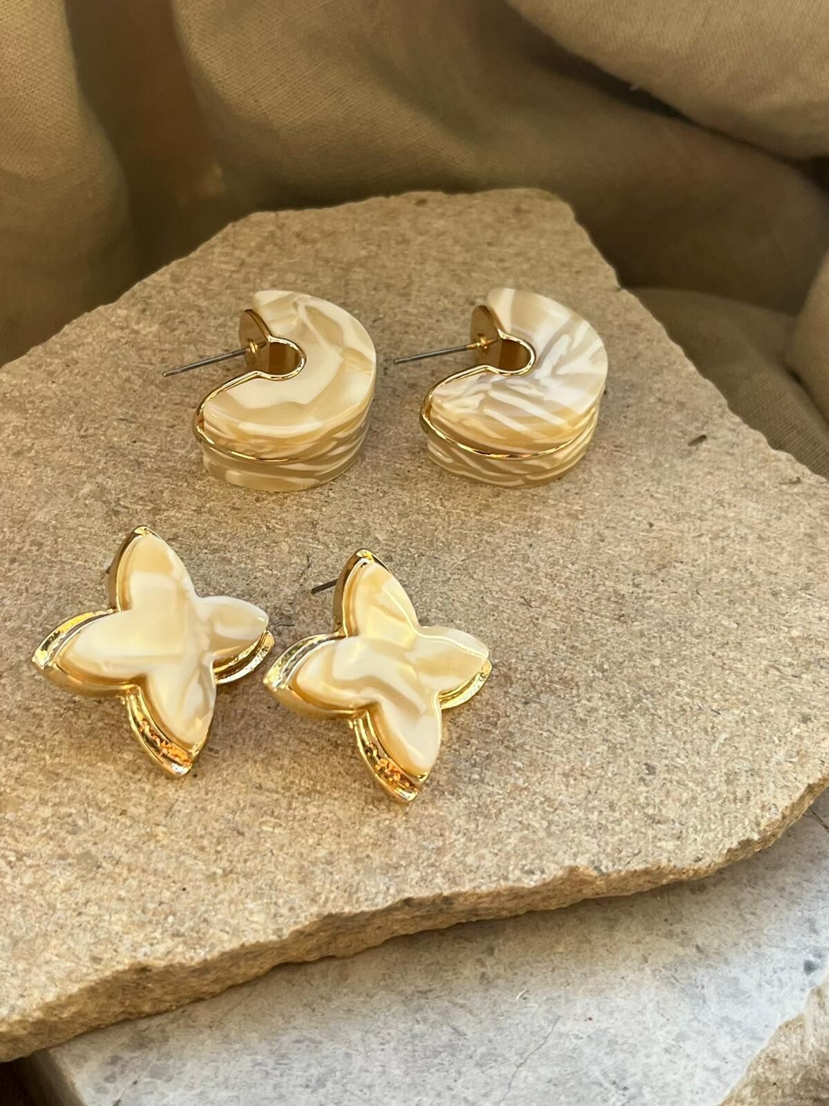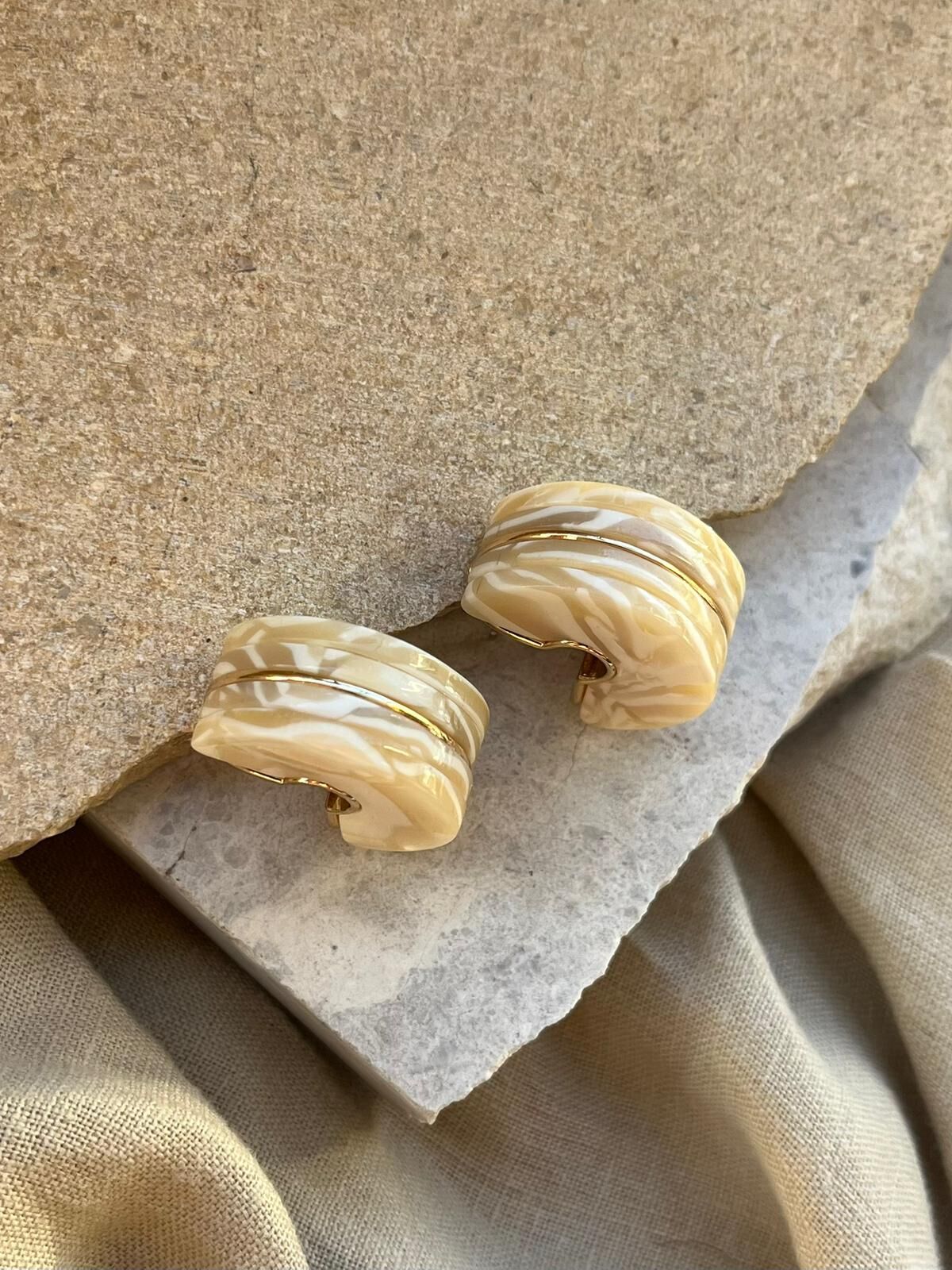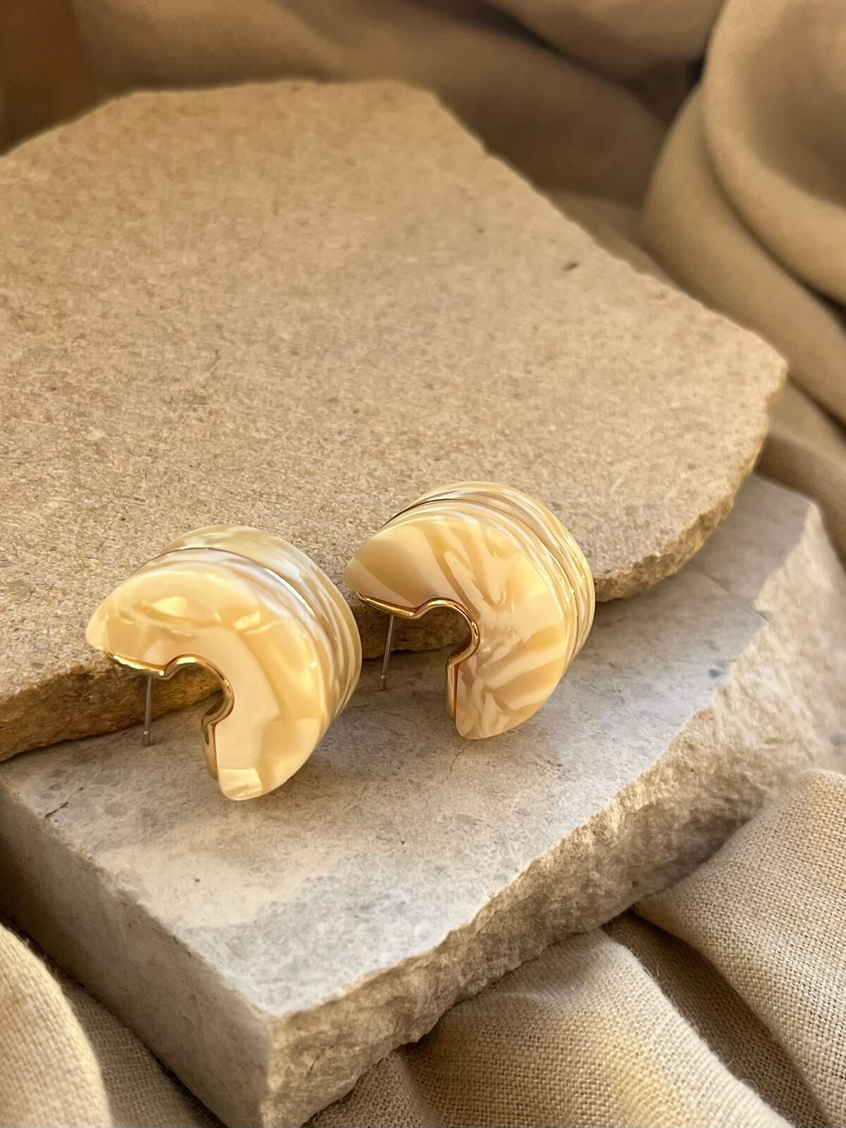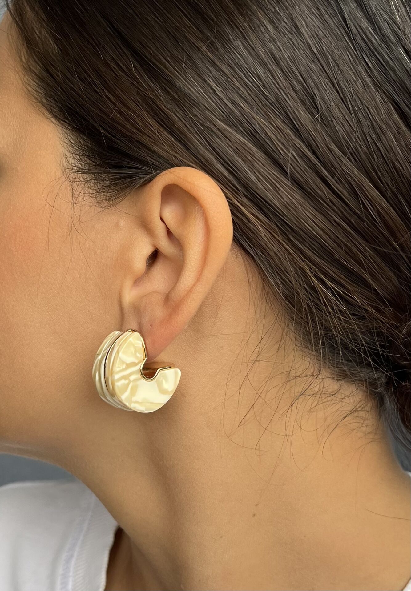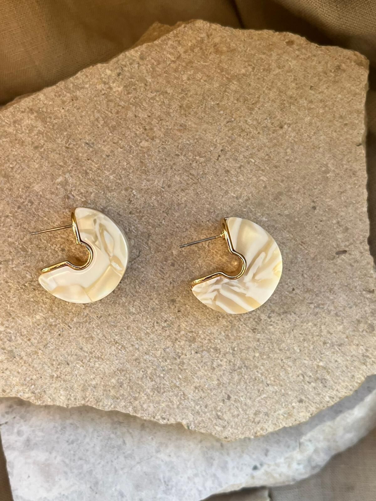 Beyaz Desenli Yarım Tekerlek Küpe