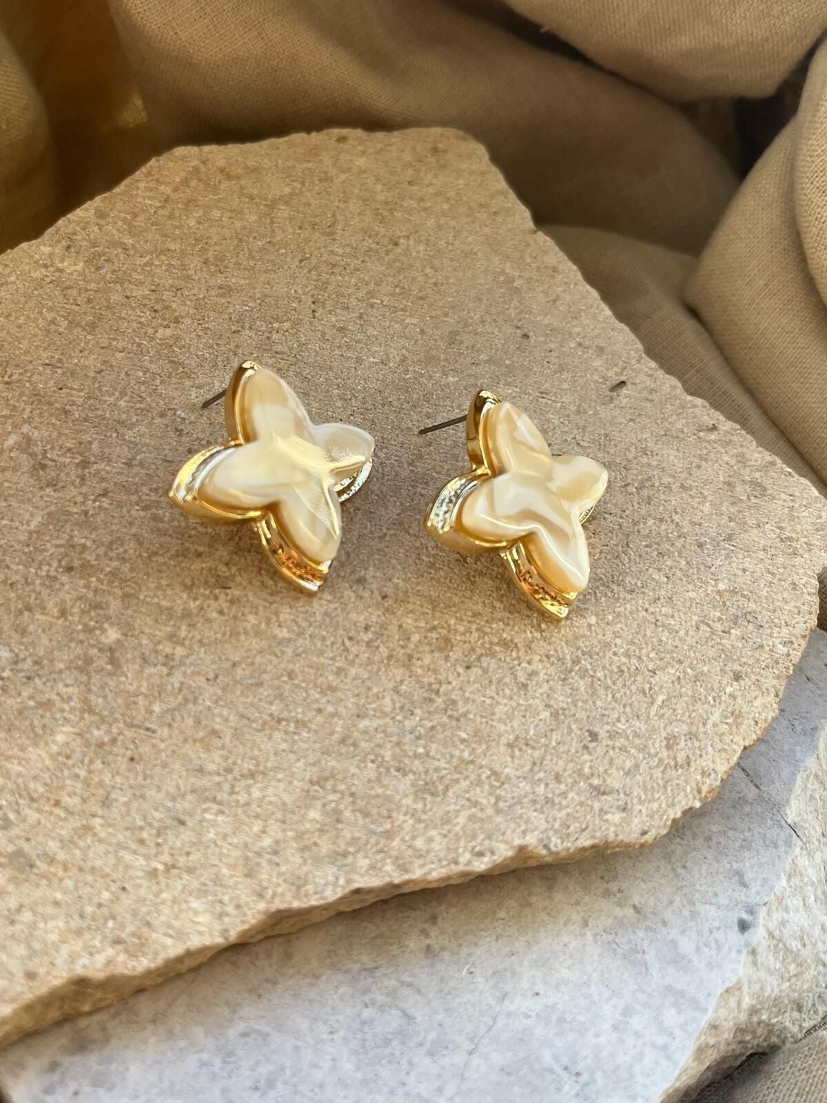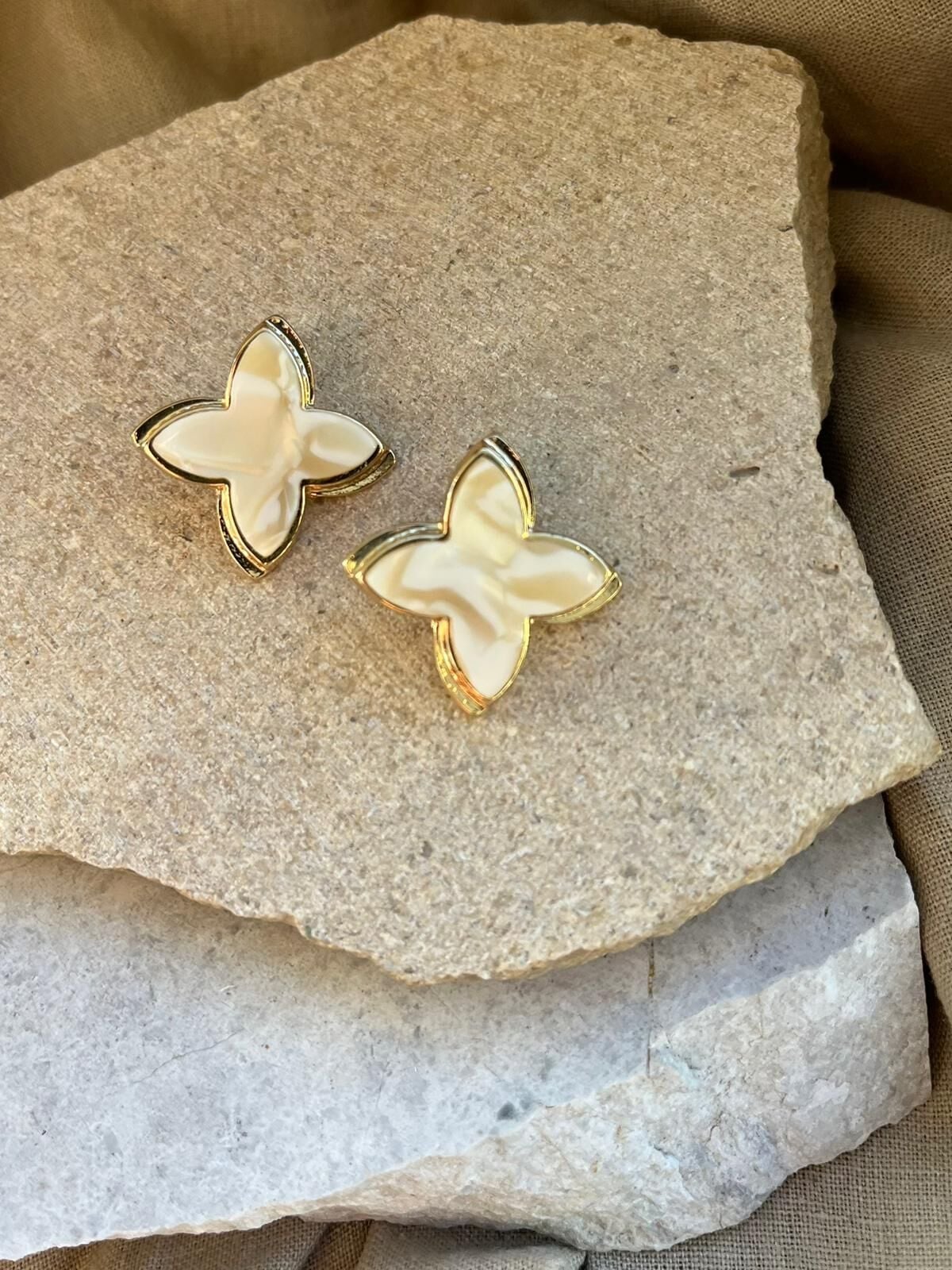 Beyaz Taş Yaprak Küpe