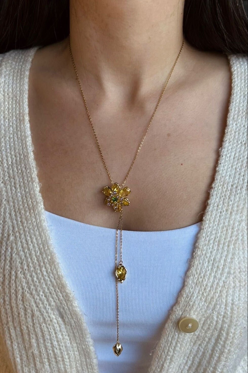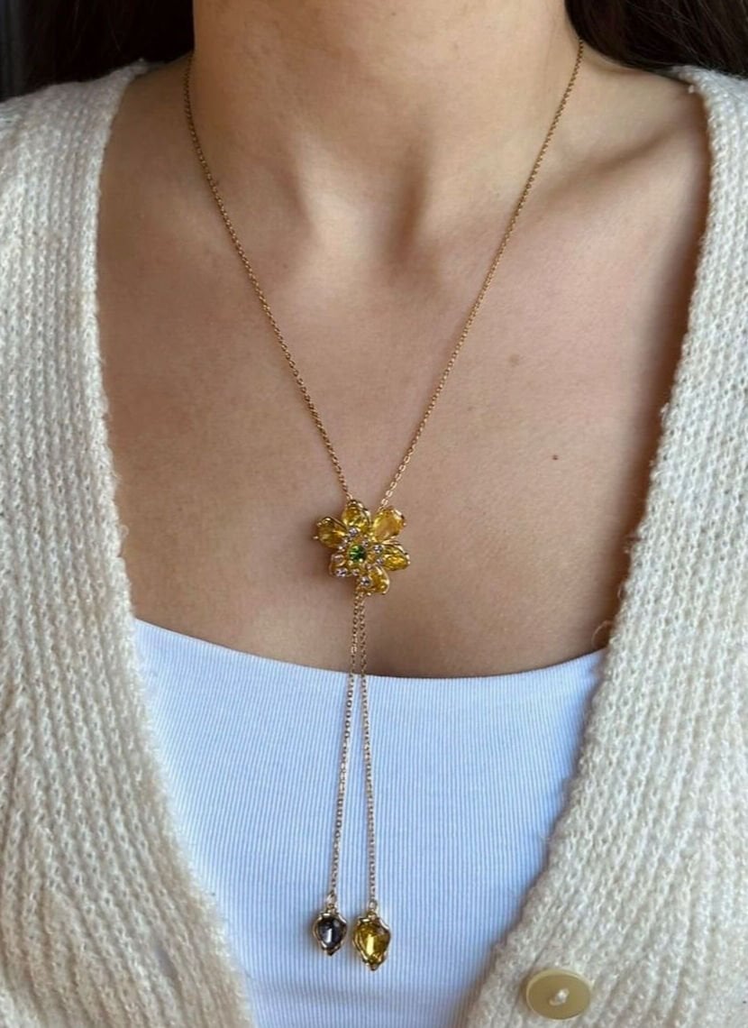 Çiçekli Ayarlanabilir Kolye Sarı