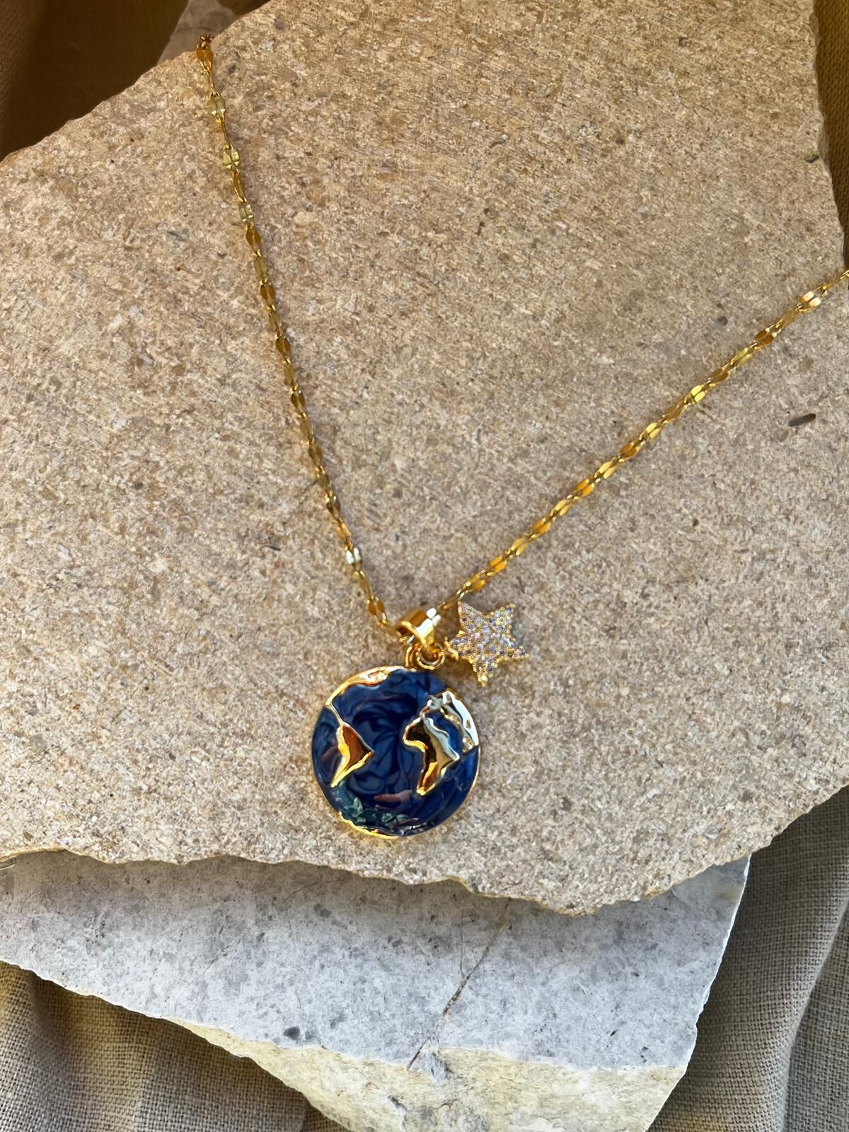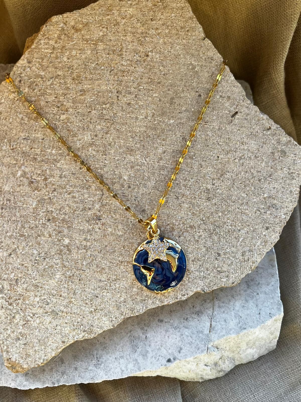 Dünya ve Taşlı Yıldız Uçlu Kolye
