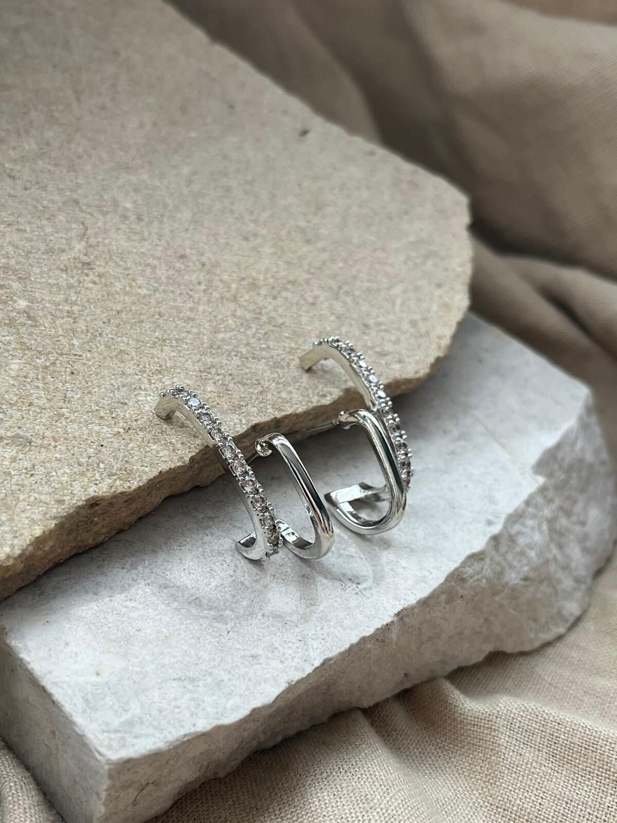 Gümüş Renkli Taşlı İkili Küpe Seti