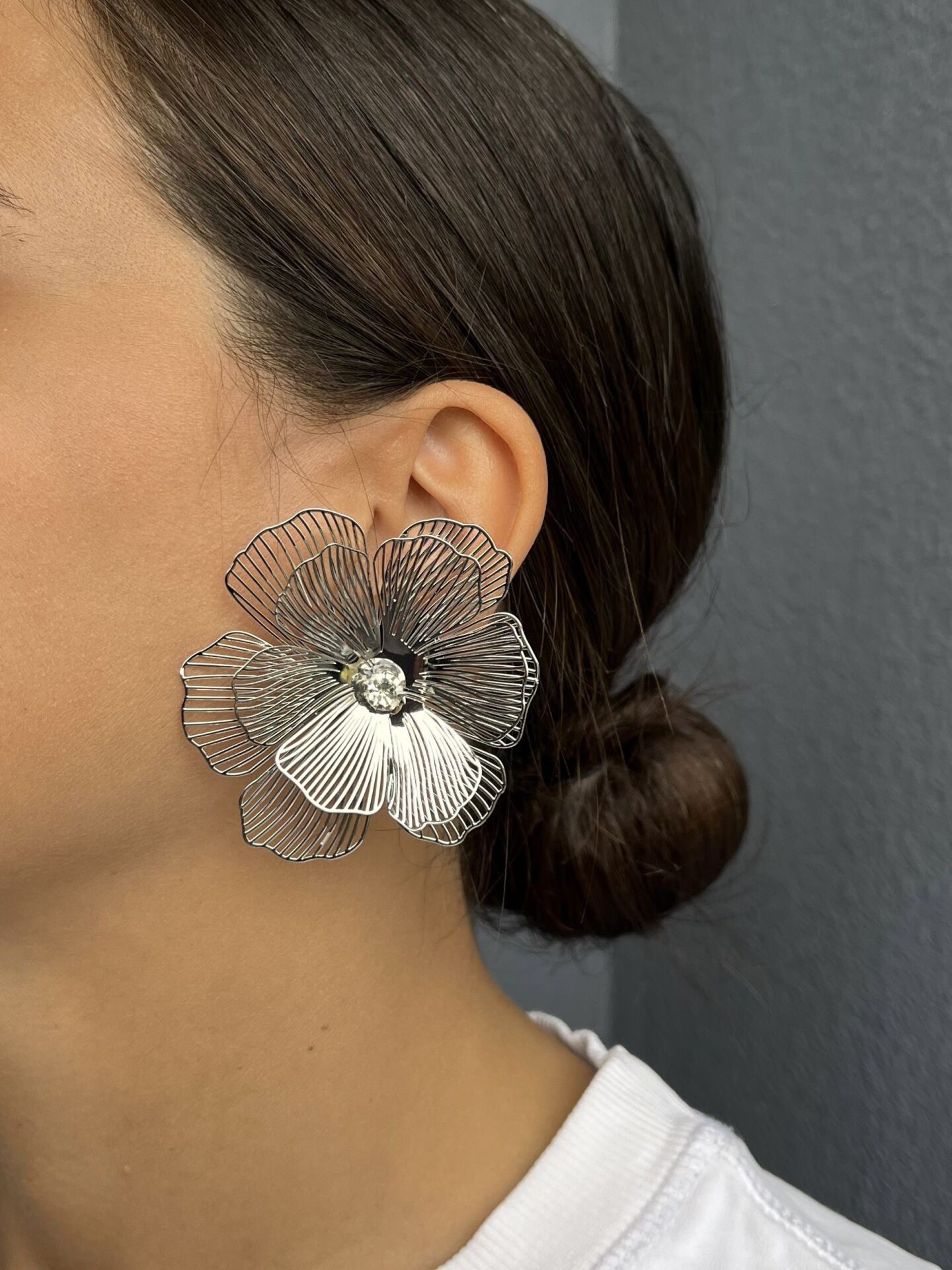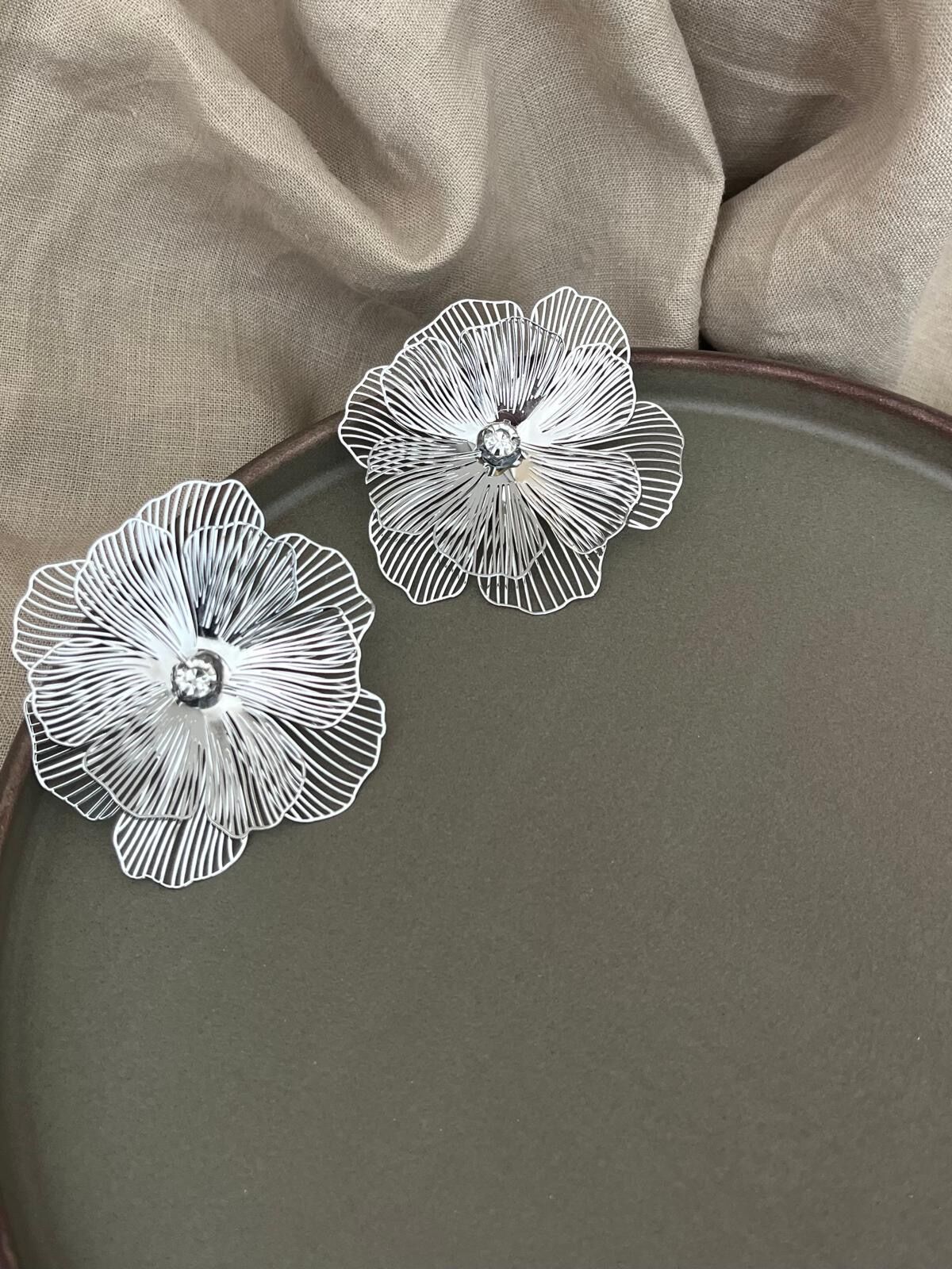 Gümüş Renkli Tel Çiçek Küpe