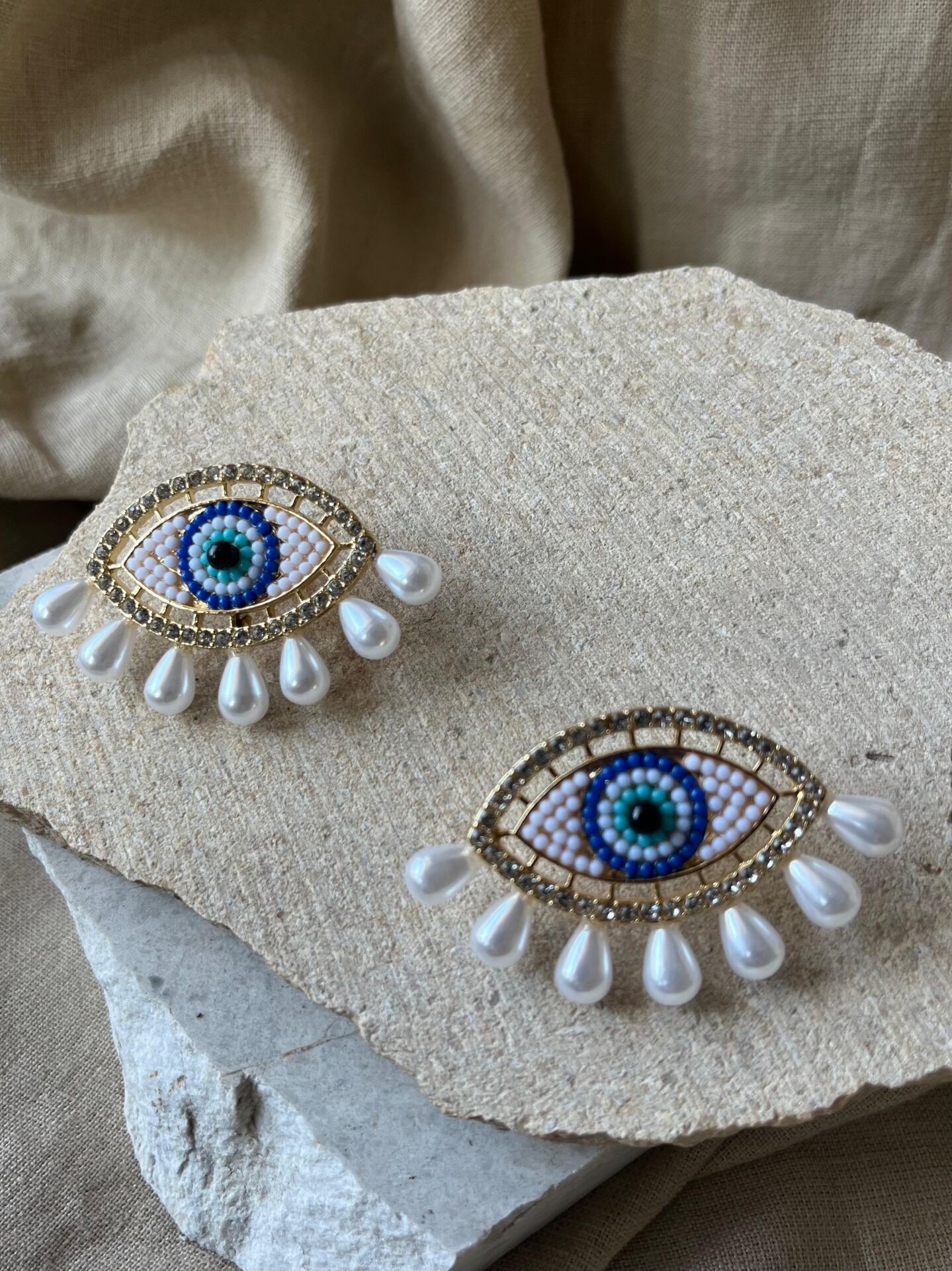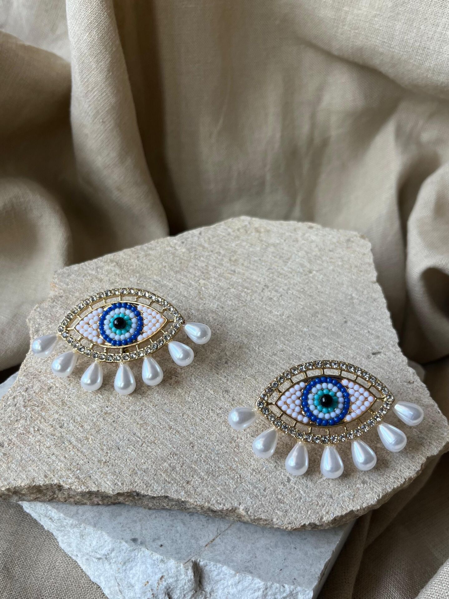 İnci Göz ve Nazar Boncuğu Küpe