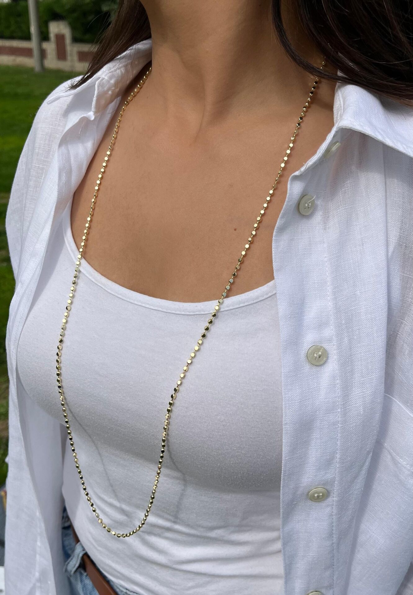Kare Desen Uzun Dolama Zincir Kolye