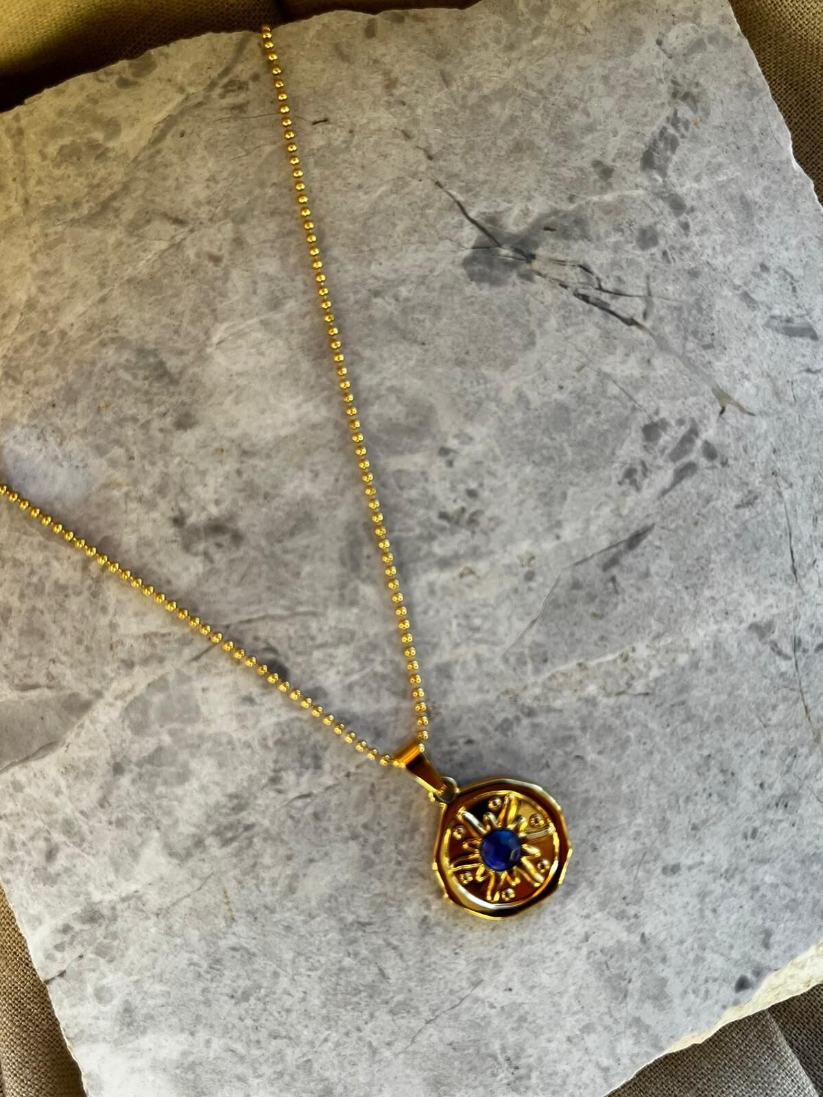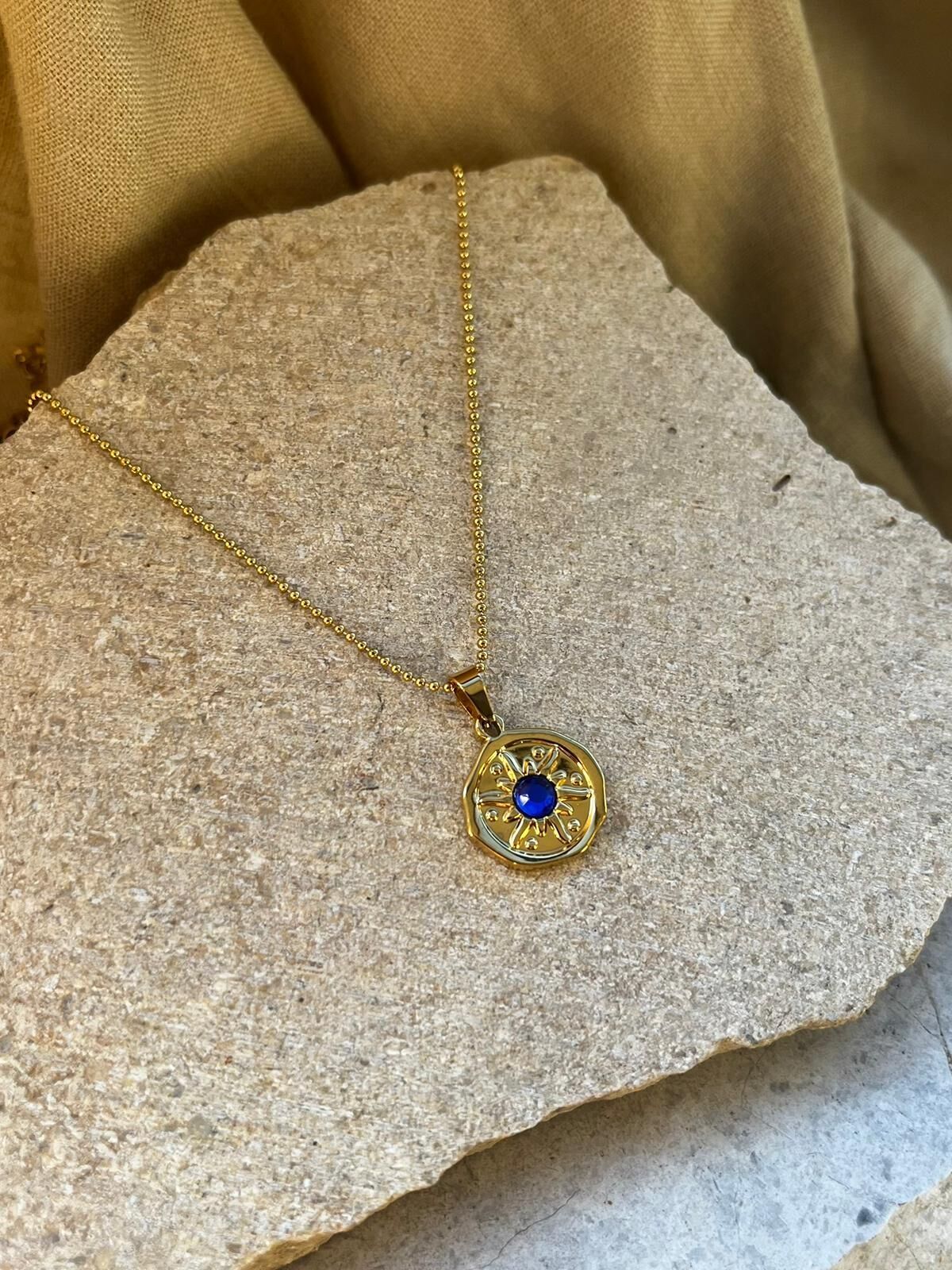 Mavi Taşlı Yuvarlak Uçlu Kolye