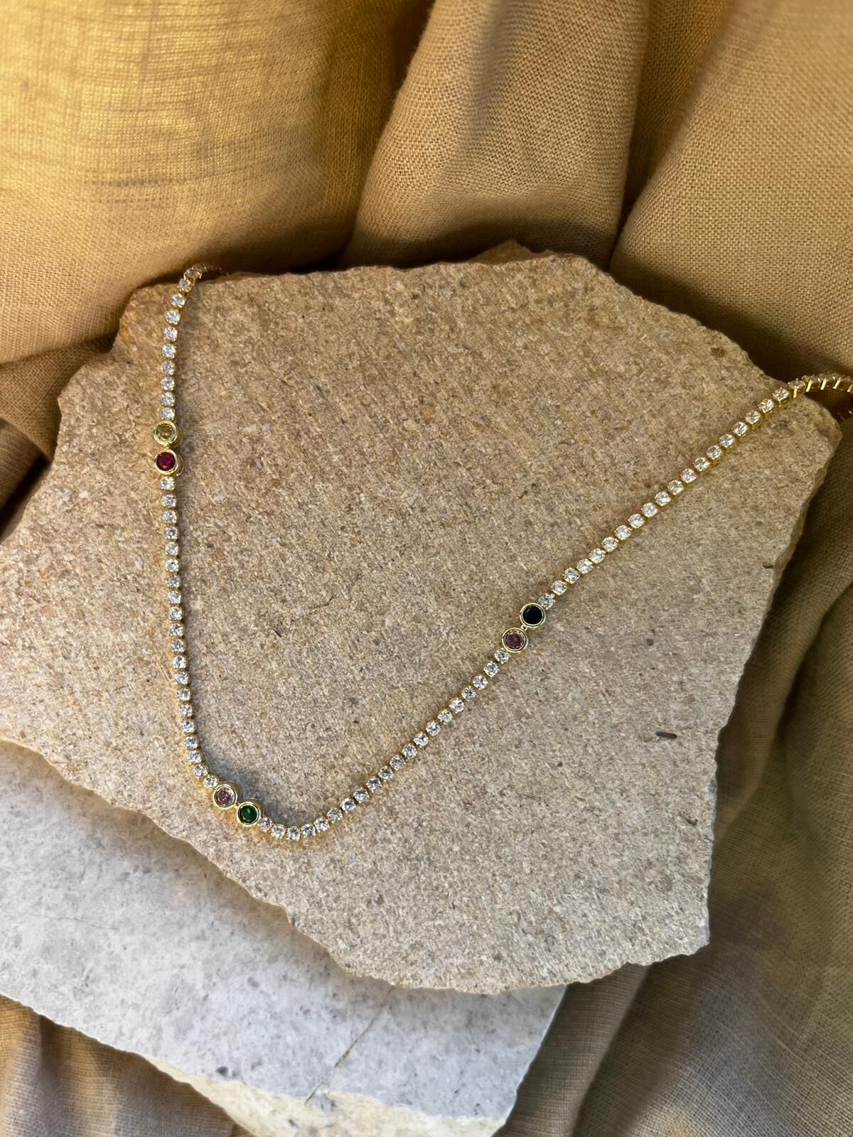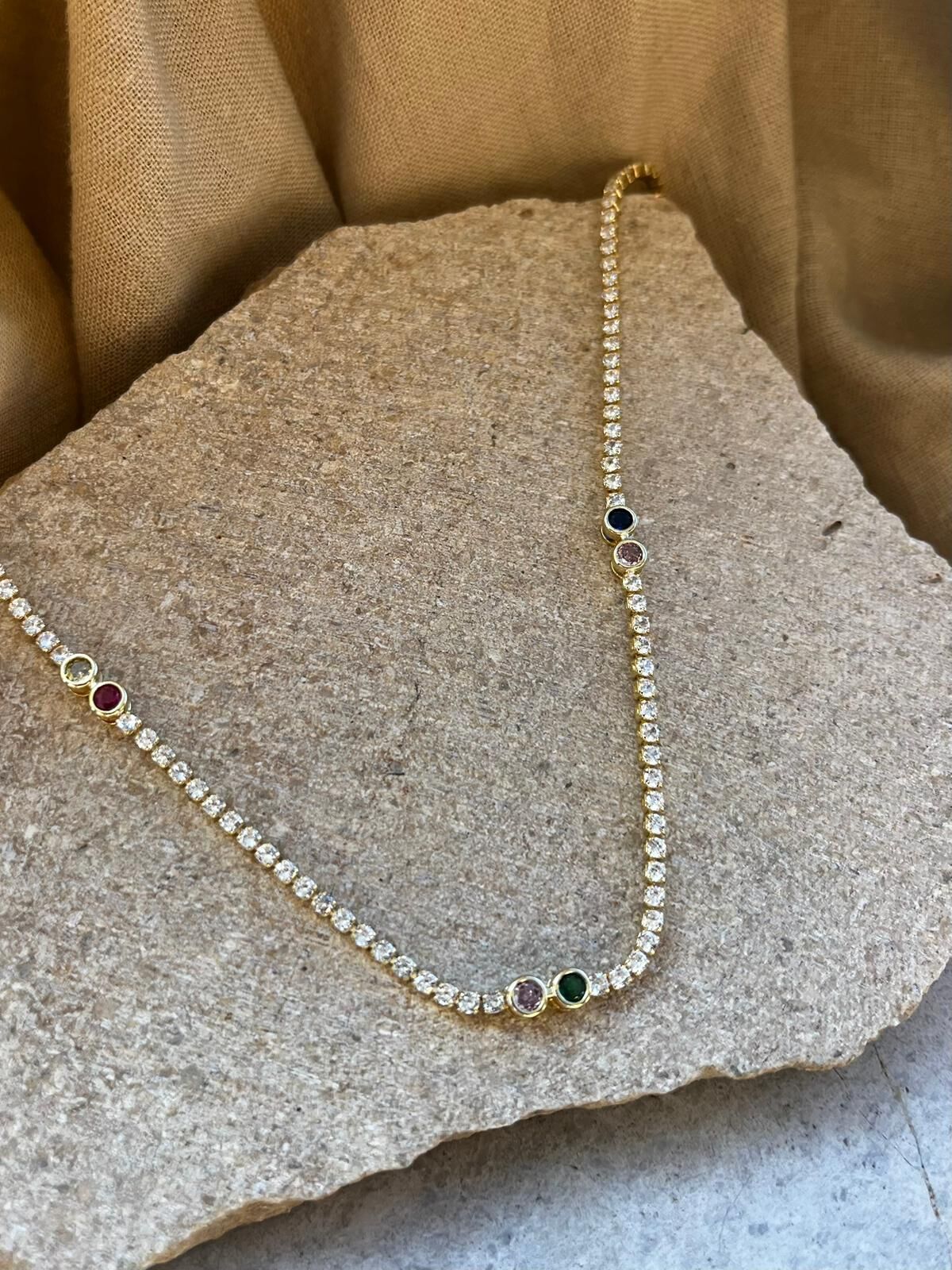 Taş Dizilim Renkli Taşlı Kolye
