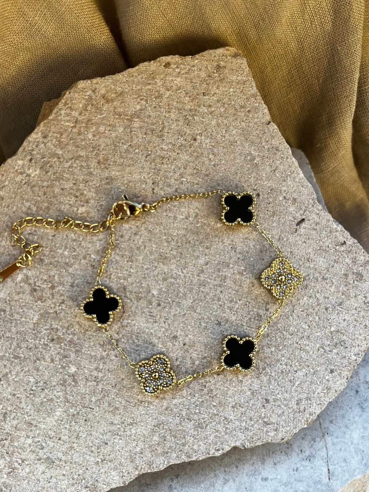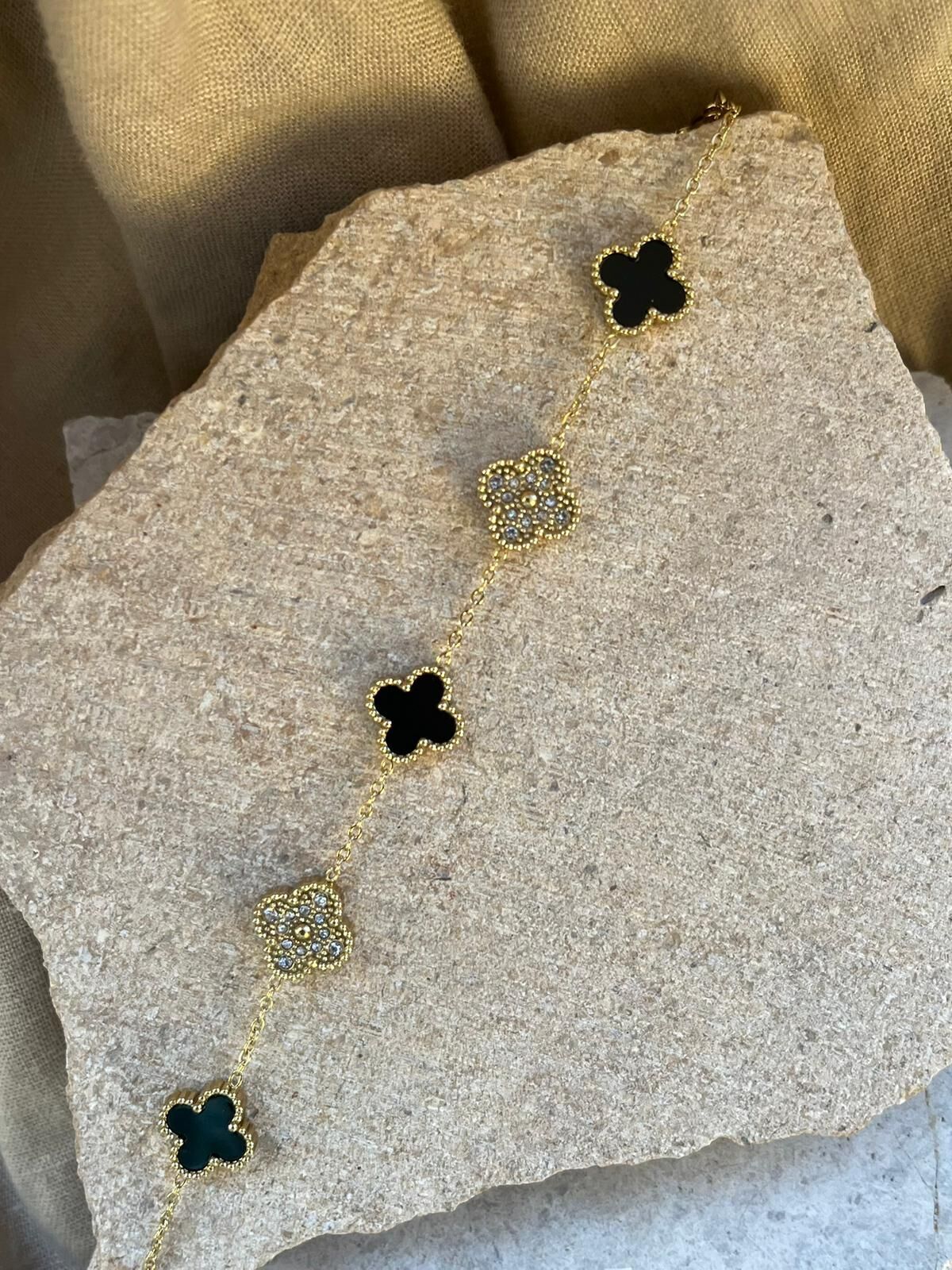 Siyah Renkli Yonca ve Taşlı Yonca Bileklik
