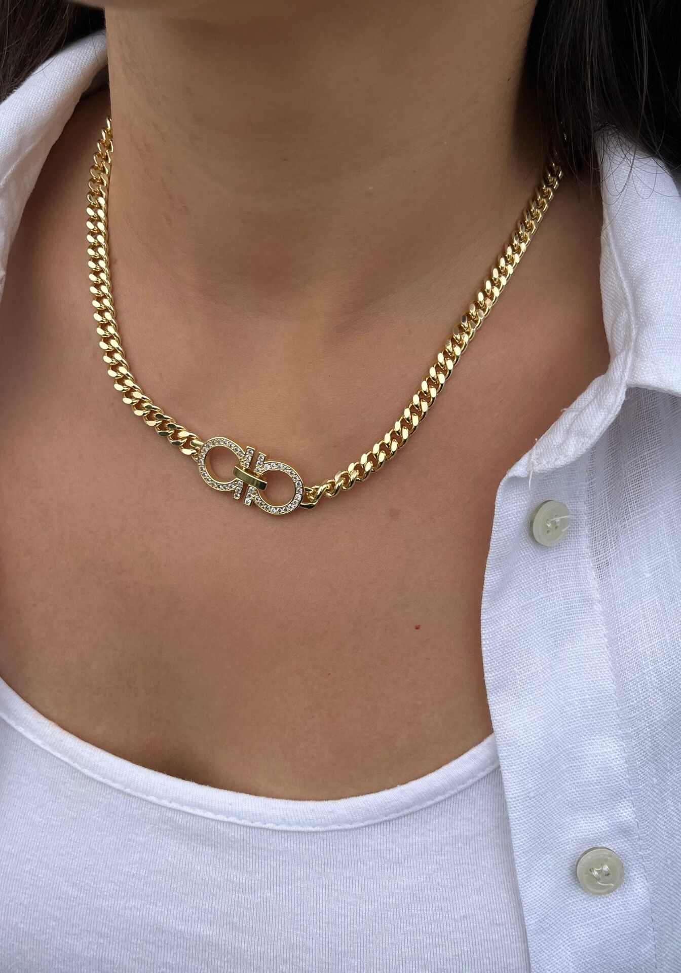 Taşlı Sonsuzluk Kelepçe Kolye