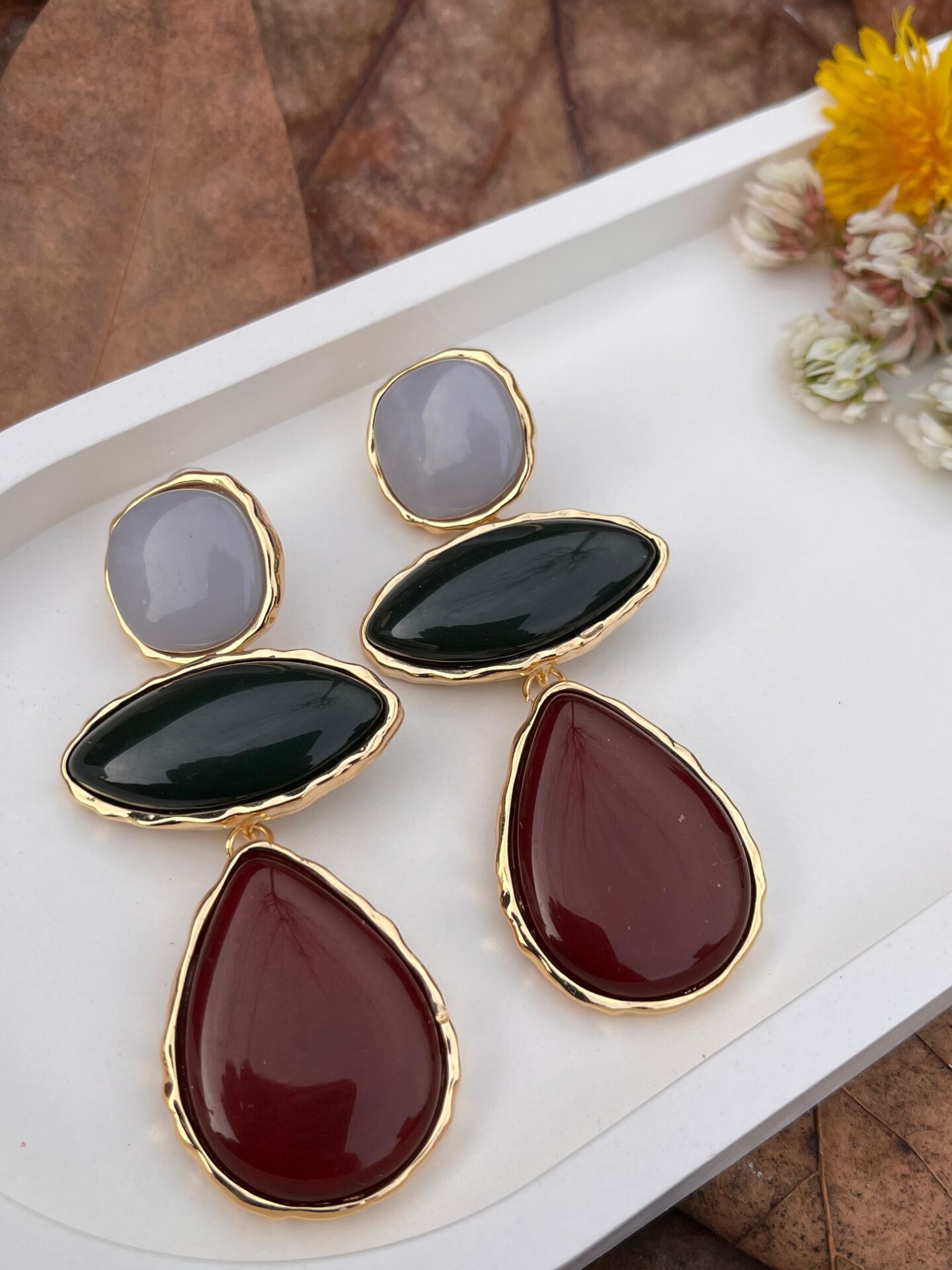 Üç Taşlı Renkli Sarkıt Küpe