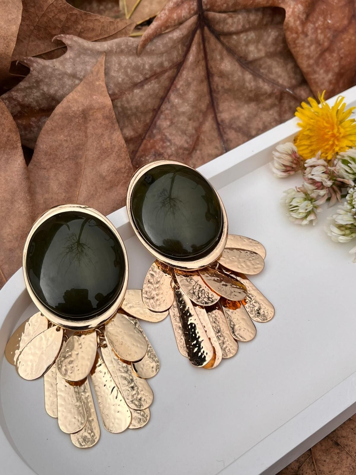 Yeşil Beyaz Büyük Küpe