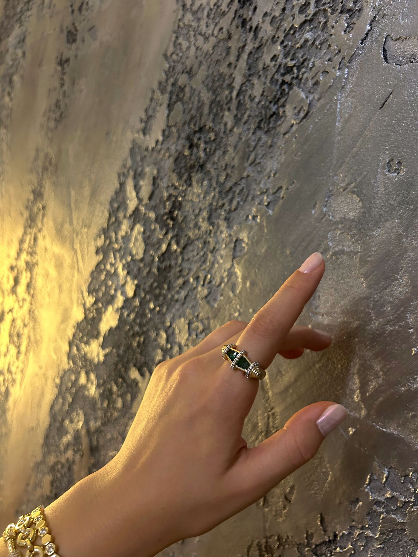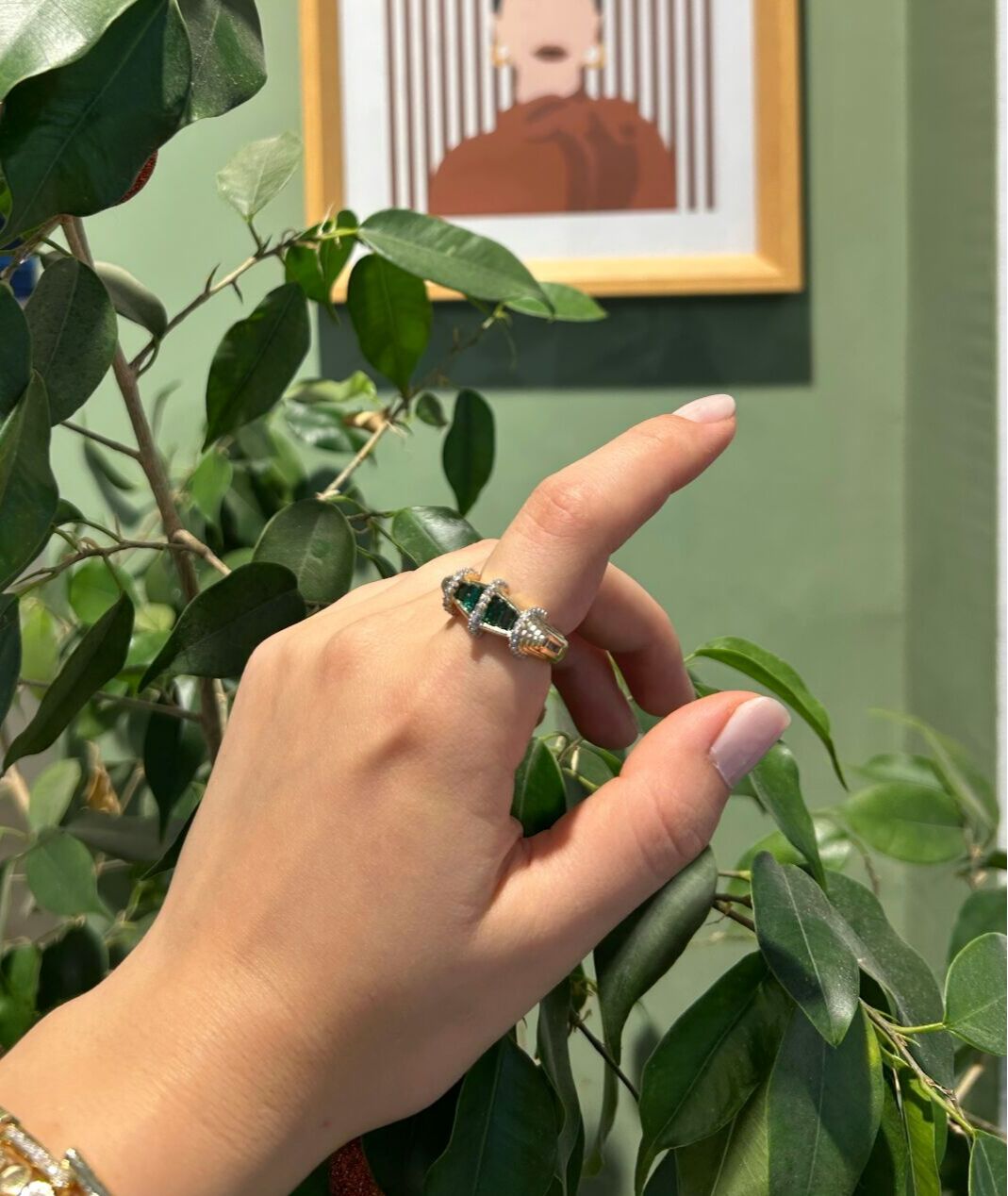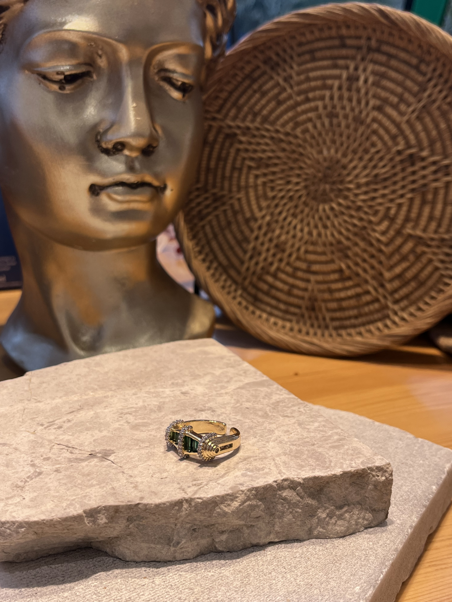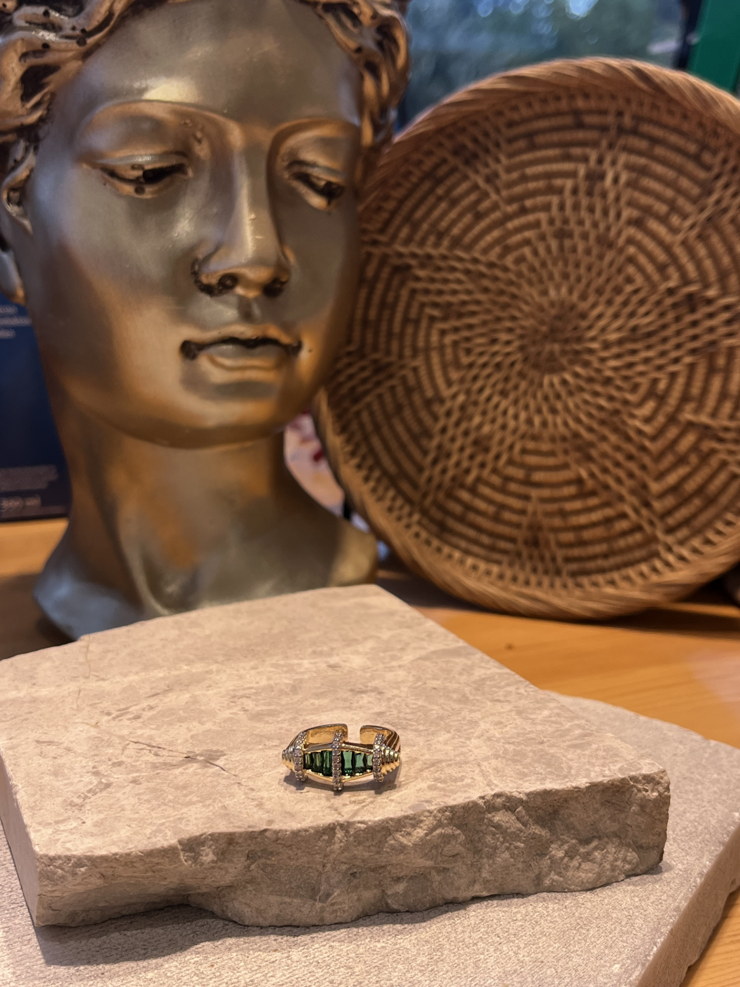 Yeşil Taşlı İşlemeli Yüzük