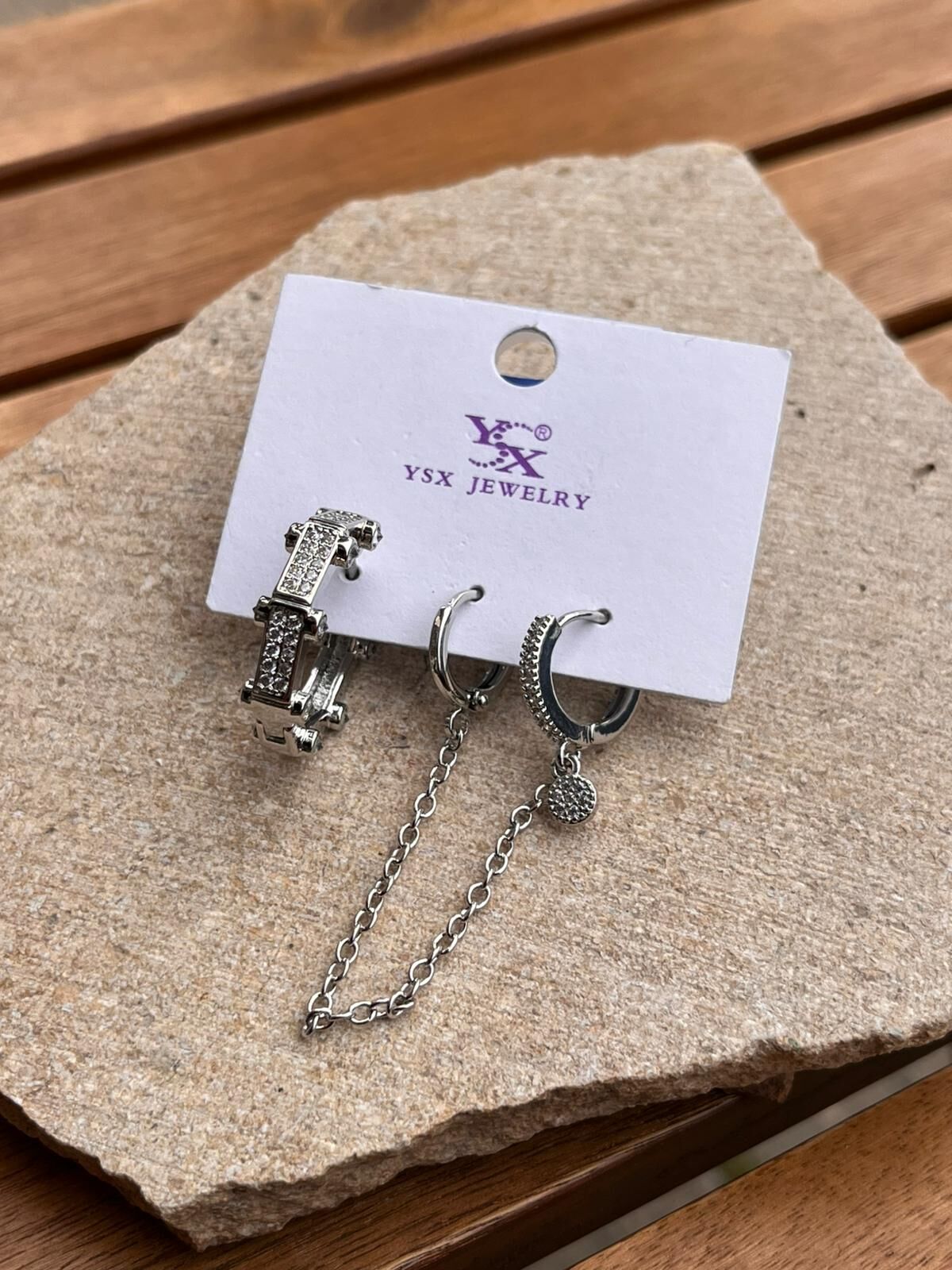 YSX Jewelry Halka Zincir Üçlü Küpe Seti